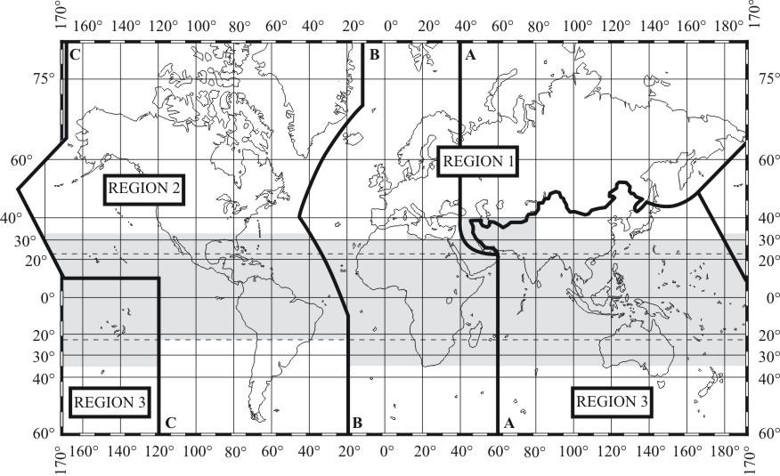 In agenda item 1.2, the 3.6-3.7 GHz frequency band was allocated in favour of the International Mobile Telecommunications (IMT). The decision applies to fourteen Region 2 countries (ITU regions are shown in Figure 1). The 6.425-7.125 GHz frequency band was allocated in favour of IMT to two Region 2 countries and three Region 3 countries. However, the applicable protection criteria are not satisfactory and may become the subject of discussions by ITU working groups for subsequent changes at WRC-27. In item 1.3, the 3.6-3.8 GHz frequency band was allocated to IMT for most member countries of the African Telecommunication Union and the Arab Spectrum Management Group. An exception was made for six African states where the 3.7-3.8 GHz frequency band would continue to be used by the Fixed Satellite Services (FSS) on a secondary basis.